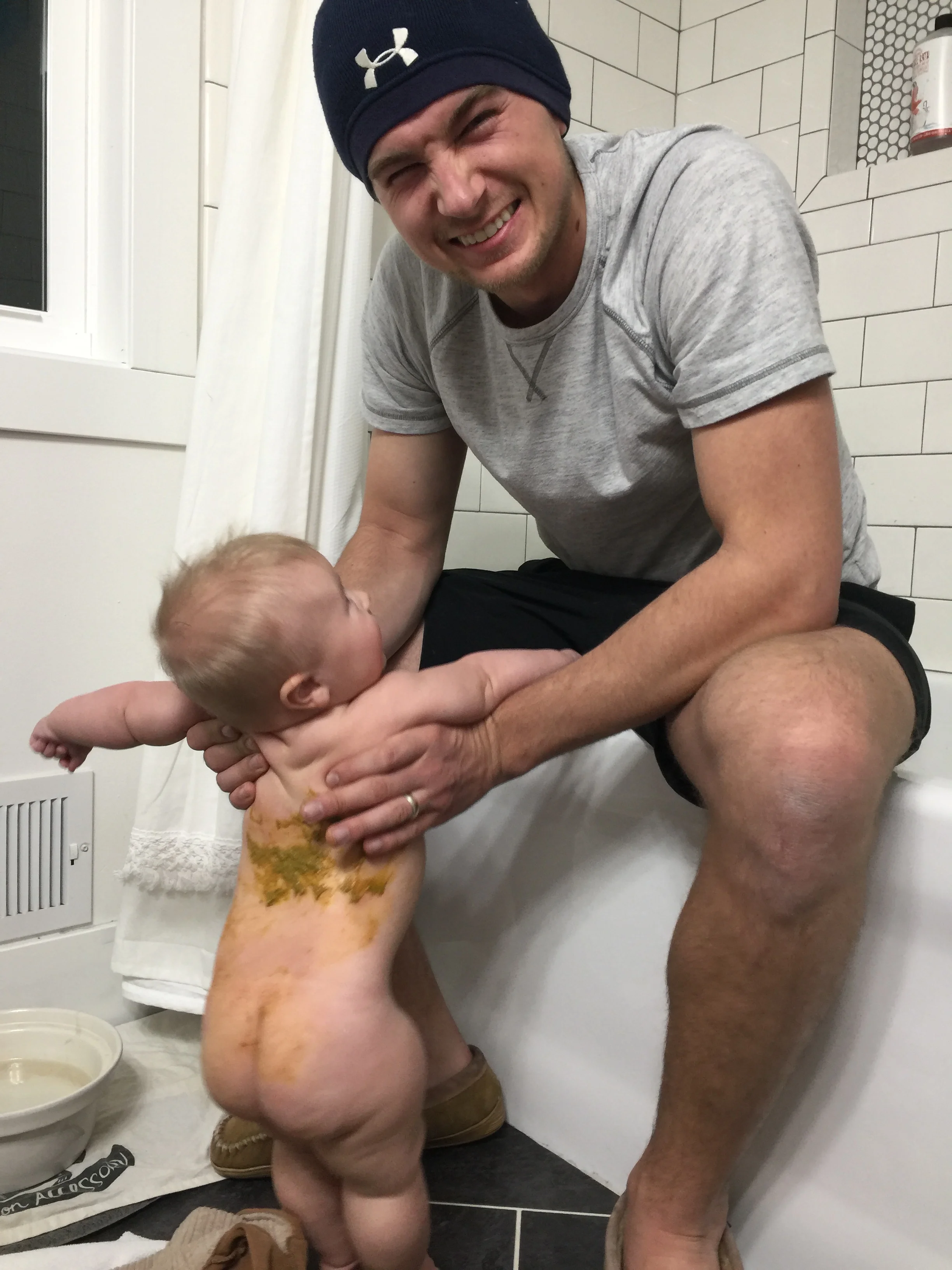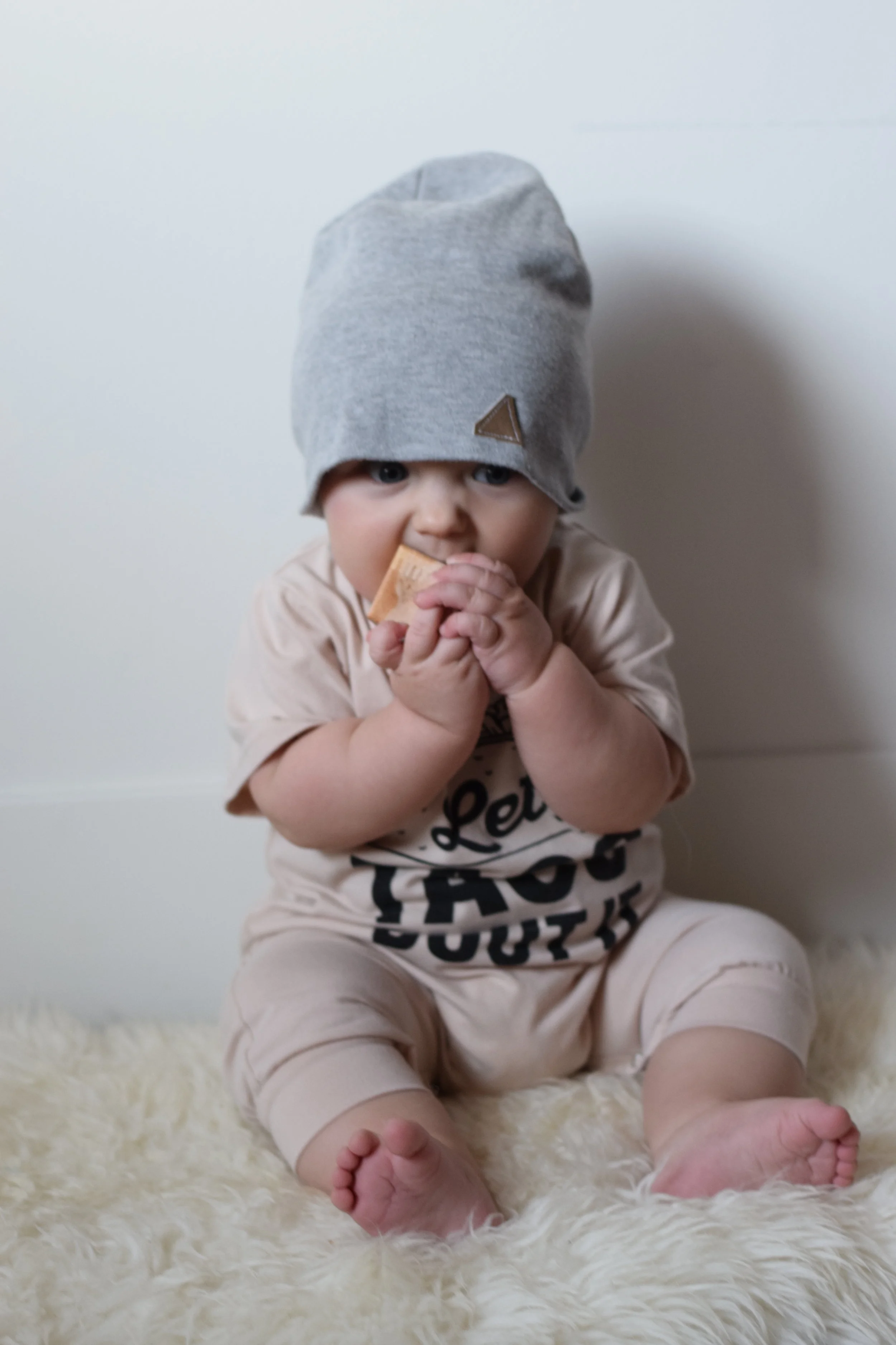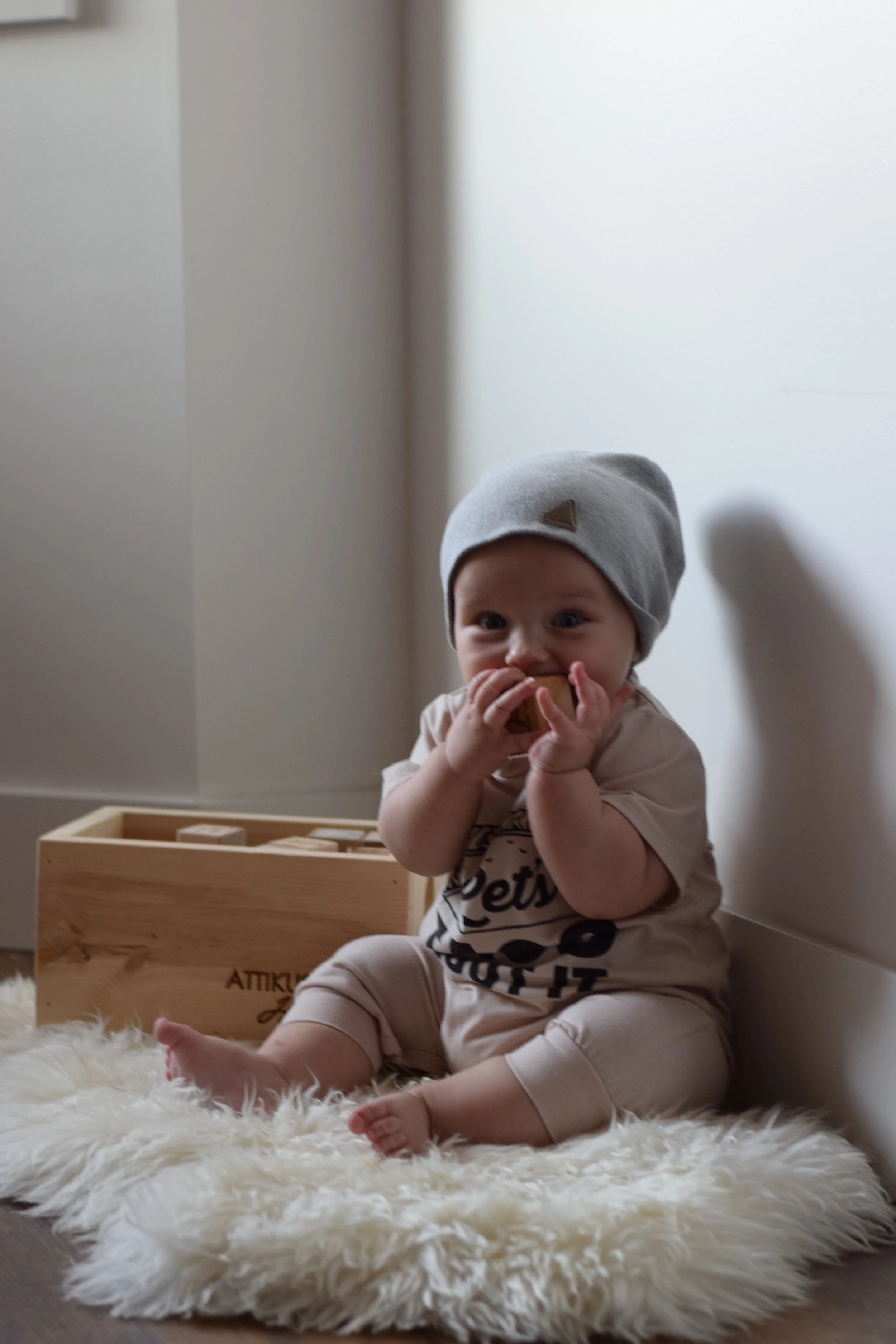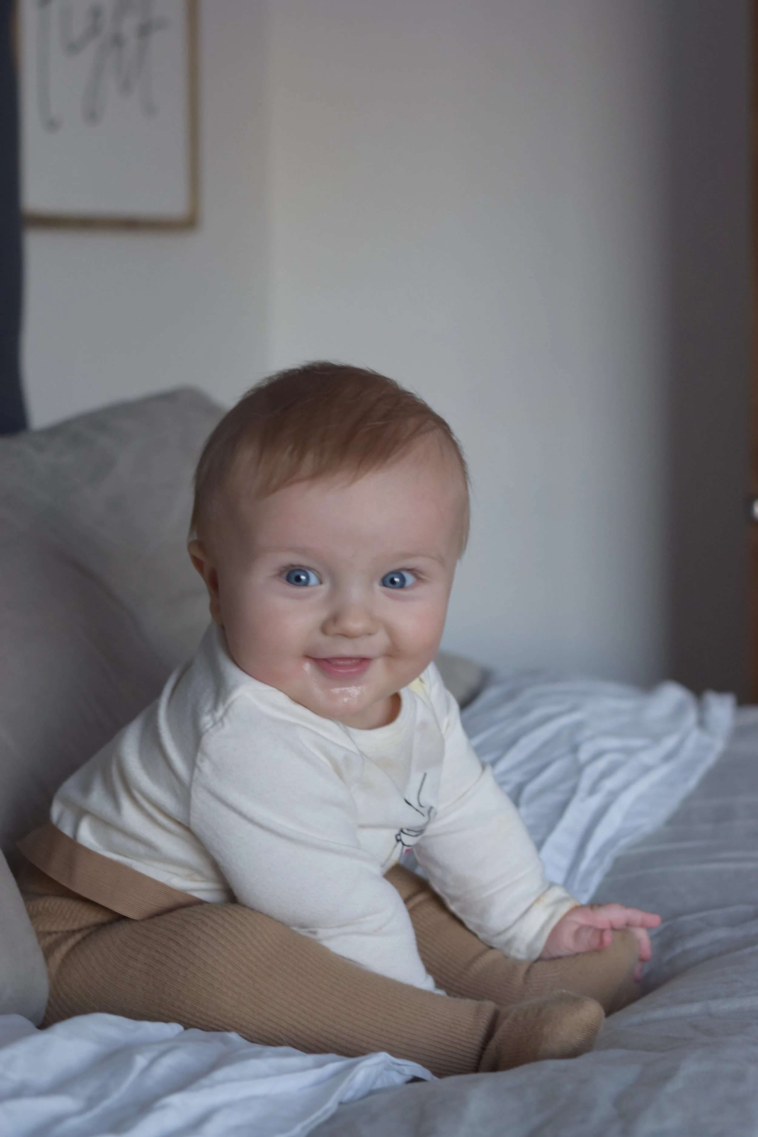 Anywho.. My sweet chunky boy is 7 months old. I keep saying that it sounds weird to say, like he sounds super old and I really don't know how time went that fast. I mean I've got an idea but com' on! Slow Down. So the STATS. He's 19 1/2 pounds, 27 inches tall and wears size 4 diapers. Just today I pulled out all the 12-18 month clothes bins because his chunky little thighs can't fit into his just 12 month clothes! I put him to bed in 18 month jammies... my baby! I literally just packed those bins away when we moved into this house because Oliver had just grown out of them. He's a bean pole though, definitely a Wagamon.