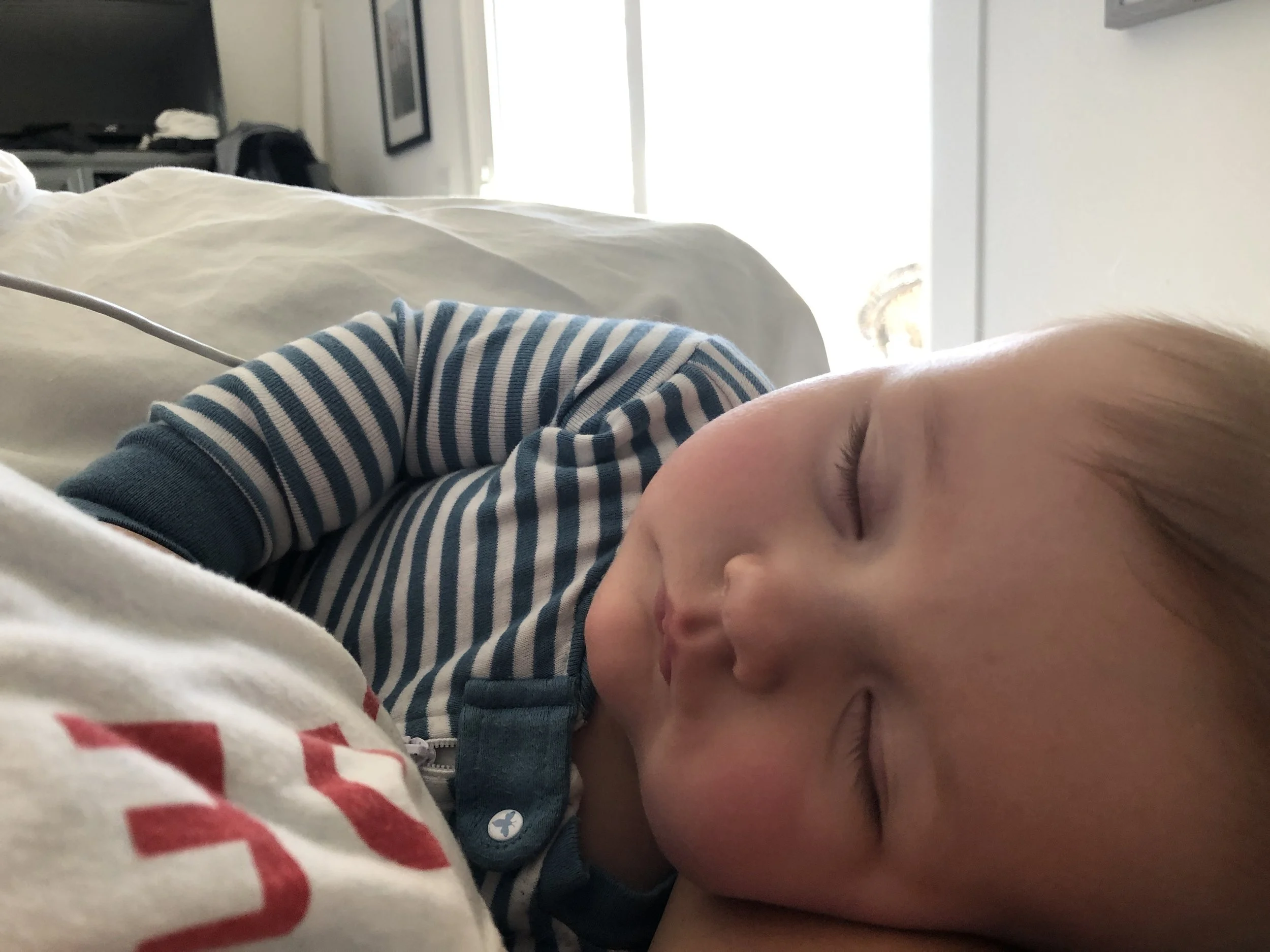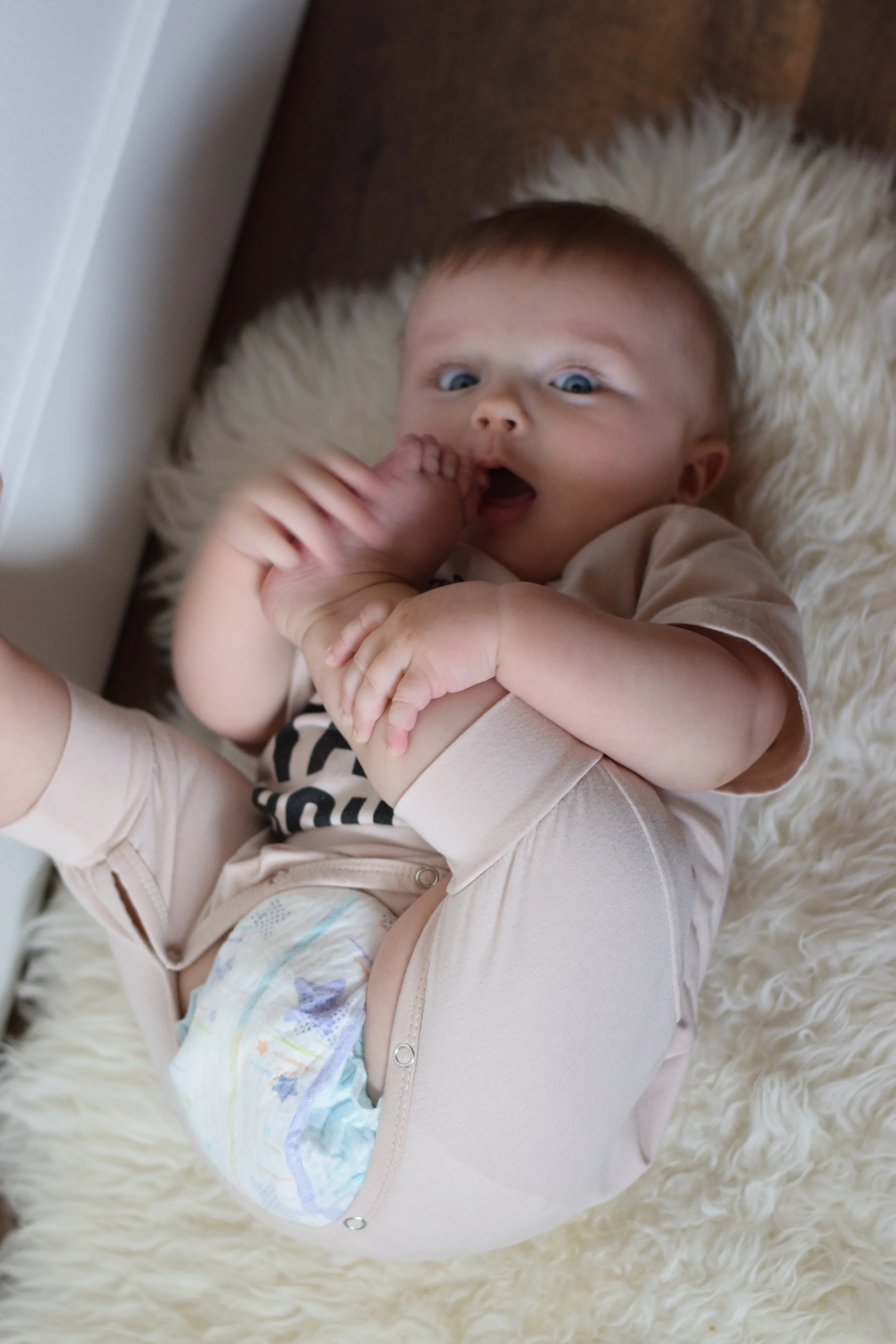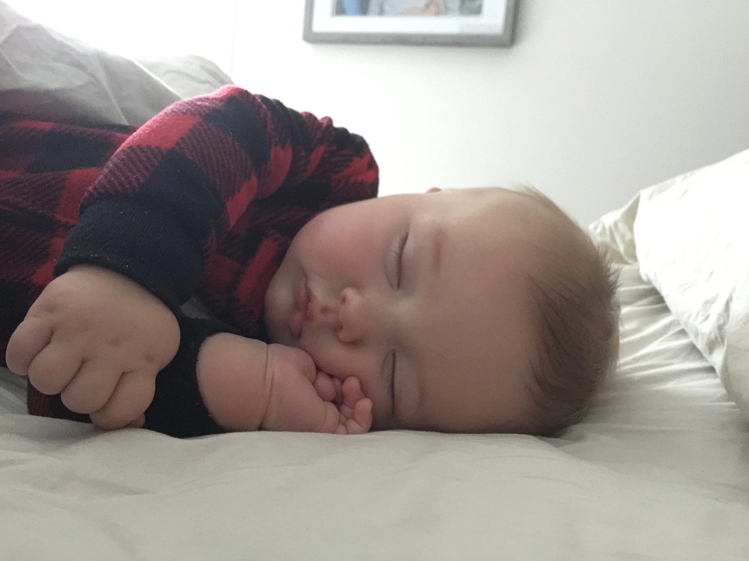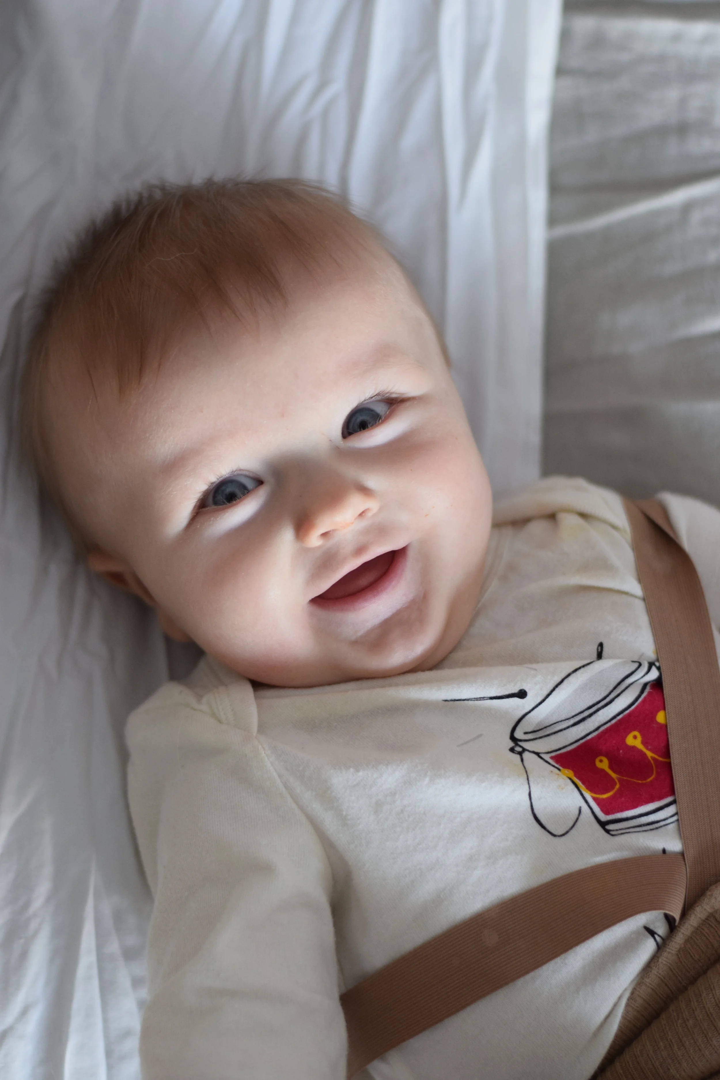 Sleep has kind of regressed since his 4 month post. He still sleeps in his dock-a-tot although I think I need to upgrade to the deluxe, unless I just take it away completely and put him in his crib. IDK what I want to do yet. He wakes up about 2-3 times now-a-days to nurse, but then goes right back to bed and sleeps til around 7-8am. He's still nursing about 4-5 times during the day, but is enjoying much more solids and food from moms plate. He loves those yogurt melts and puffs!